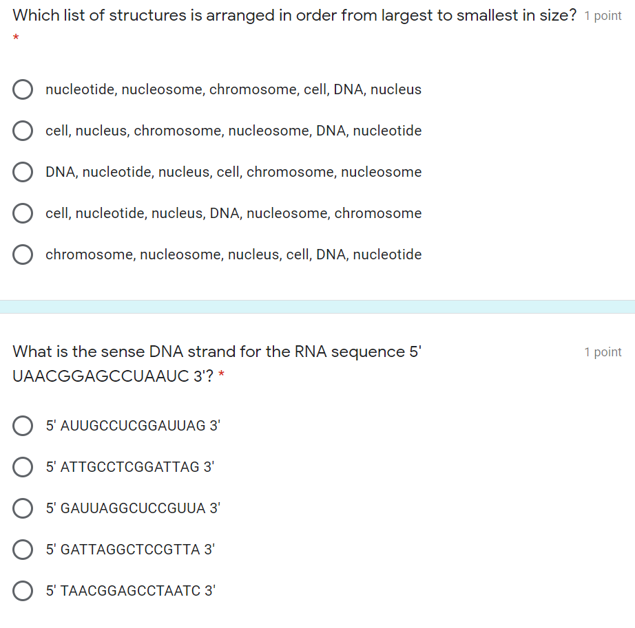 Solved Put These In Order Of Size From The Largest To Smallest Chromosome Dna Nucleus Gene Nitrogen Base Cell